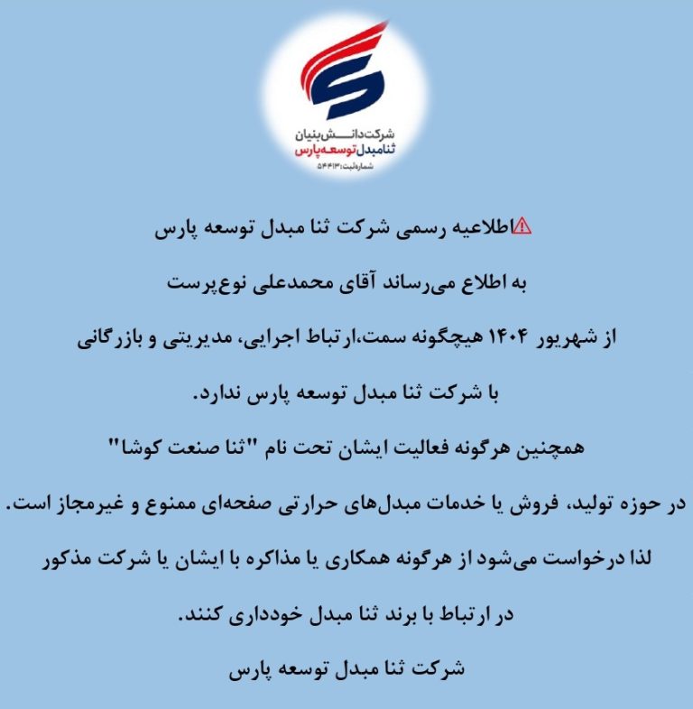 شرکت دانشبنیان ثنا مبدل توسعه پارس، شناخته شده به عنوان یکی از تأمینکنندگان معتبر مبدلهای حرارتی صفحهای (گسکتدار، جوشی، نیمهجوشی و بریز) و شل تیوب در کشور